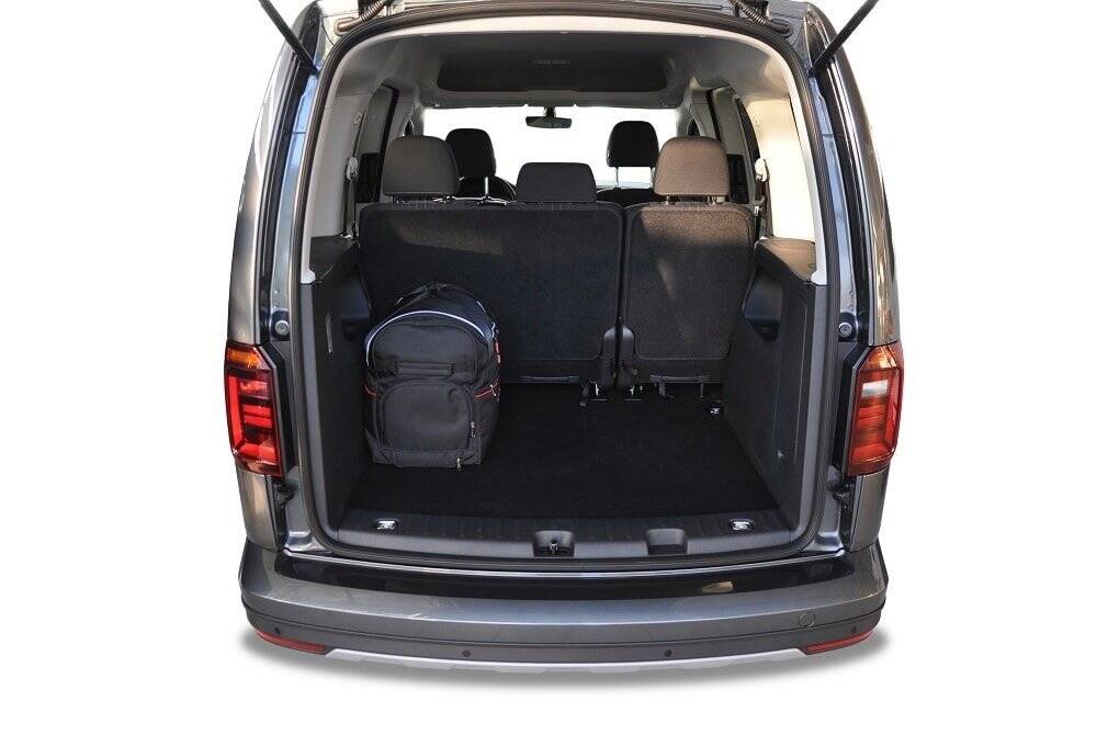 Le borse riempiono ogni centimetro quadrato del bagagliaio grazie ai lati inclinati che si allineano con l'angolazione dei sedili posteriori. Questa è una caratteristica unica delle borse KJUST.