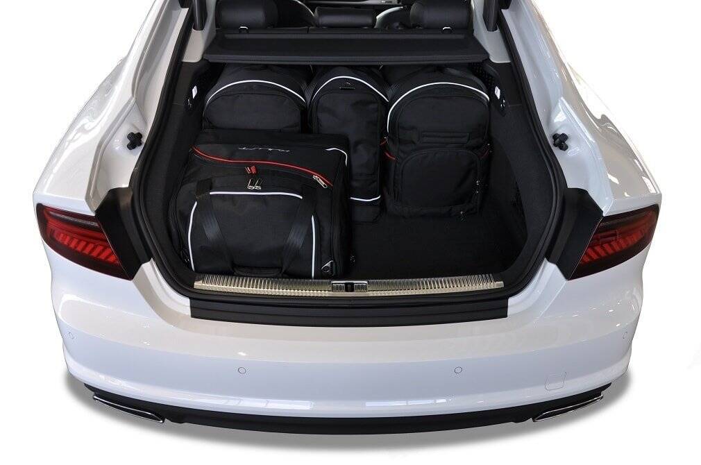 Le borse riempiono ogni centimetro quadrato del bagagliaio grazie ai lati inclinati che si allineano con l'angolazione dei sedili posteriori. Questa è una caratteristica unica delle borse KJUST.