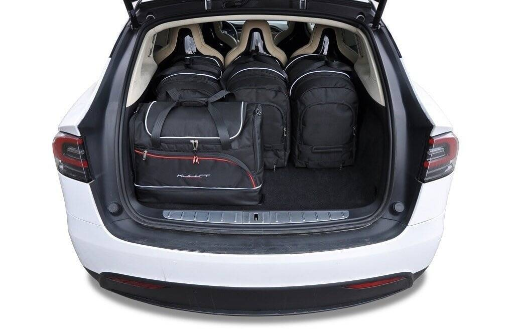 Le borse riempiono ogni centimetro quadrato del bagagliaio grazie ai lati inclinati che si allineano con l'angolazione dei sedili posteriori. Questa è una caratteristica unica delle borse KJUST.