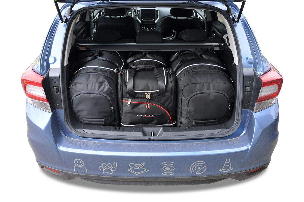 Le borse riempiono ogni centimetro quadrato del bagagliaio grazie ai lati inclinati che si allineano con l'angolazione dei sedili posteriori. Questa è una caratteristica unica delle borse KJUST.