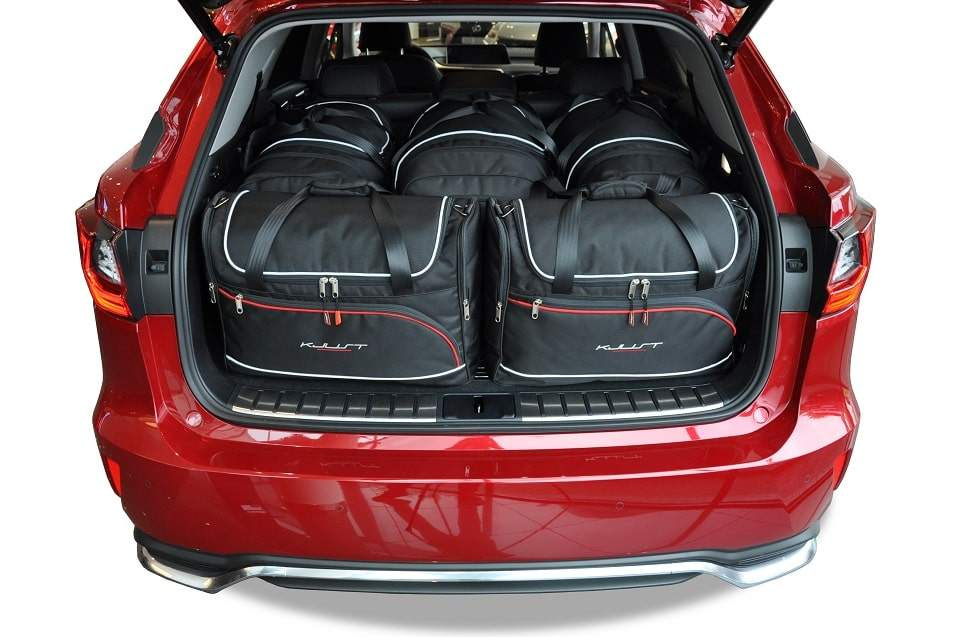 Le borse riempiono ogni centimetro quadrato del bagagliaio grazie ai lati inclinati che si allineano con l'angolazione dei sedili posteriori. Questa è una caratteristica unica delle borse KJUST.