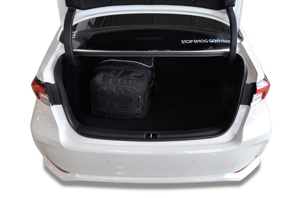 Le borse riempiono ogni centimetro quadrato del bagagliaio grazie ai lati inclinati che si allineano con l'angolazione dei sedili posteriori. Questa è una caratteristica unica delle borse KJUST.