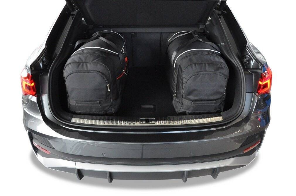 Le borse riempiono ogni centimetro quadrato del bagagliaio grazie ai lati inclinati che si allineano con l'angolazione dei sedili posteriori. Questa è una caratteristica unica delle borse KJUST.