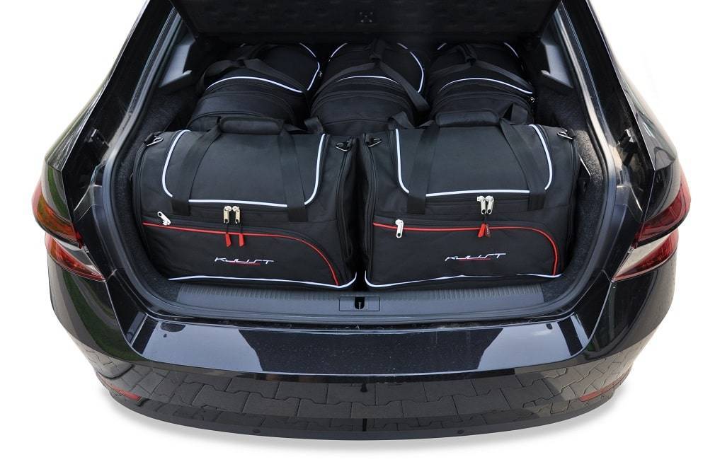 Le borse riempiono ogni centimetro quadrato del bagagliaio grazie ai lati inclinati che si allineano con l'angolazione dei sedili posteriori. Questa è una caratteristica unica delle borse KJUST.