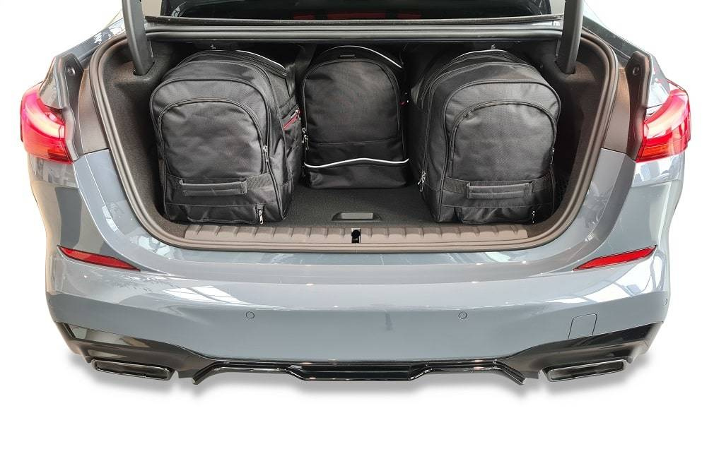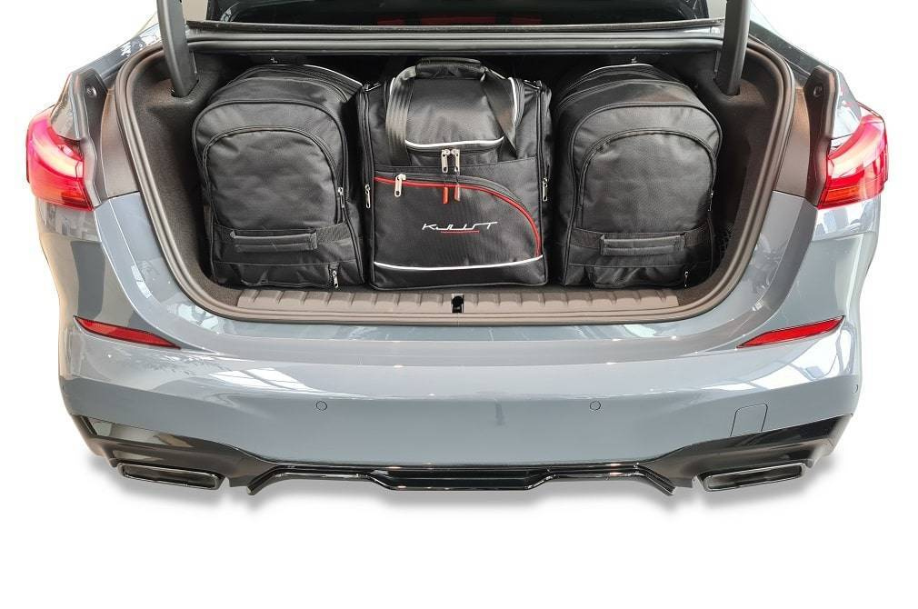 Le borse riempiono ogni centimetro quadrato del bagagliaio grazie ai lati inclinati che si allineano con l'angolazione dei sedili posteriori. Questa è una caratteristica unica delle borse KJUST.
