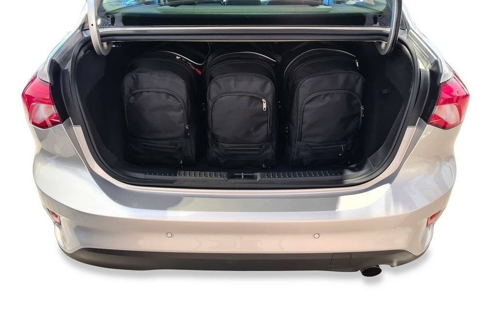 Le borse riempiono ogni centimetro quadrato del bagagliaio grazie ai lati inclinati che si allineano con l'angolazione dei sedili posteriori. Questa è una caratteristica unica delle borse KJUST.