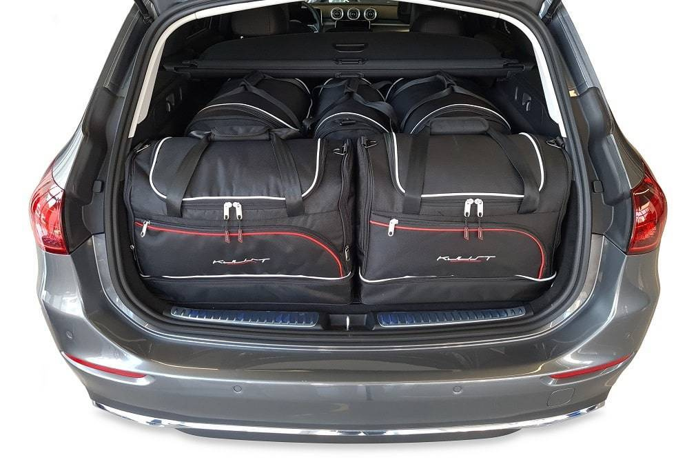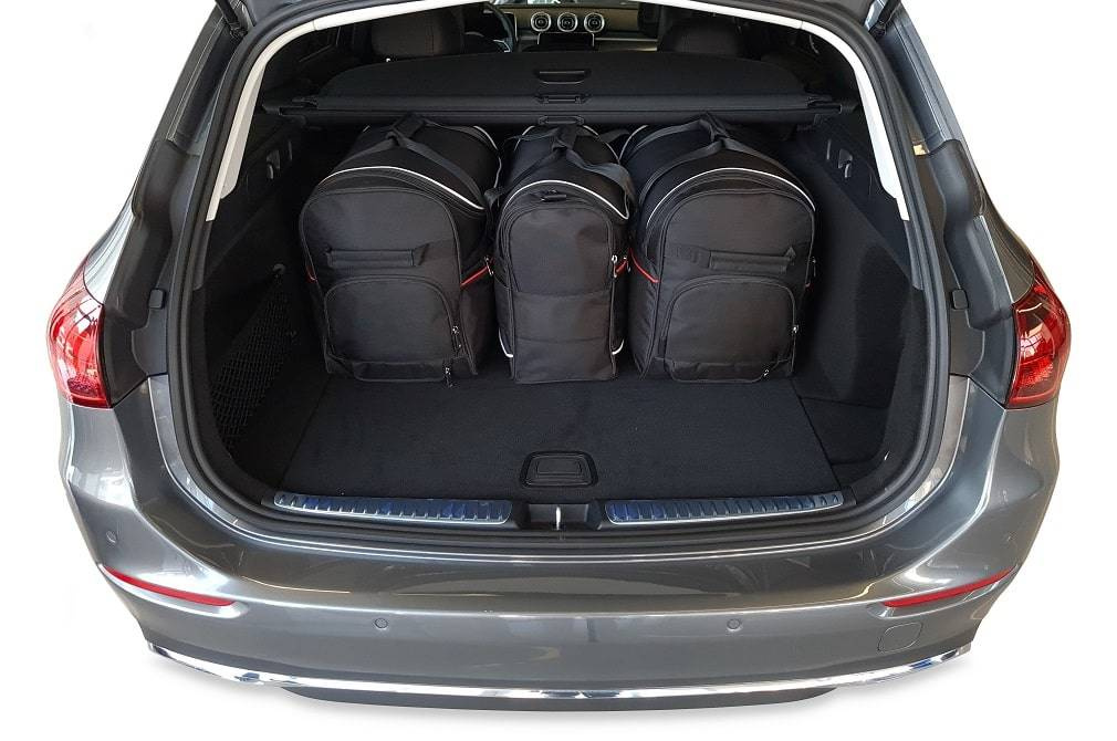 Le borse riempiono ogni centimetro quadrato del bagagliaio grazie ai lati inclinati che si allineano con l'angolazione dei sedili posteriori. Questa è una caratteristica unica delle borse KJUST.