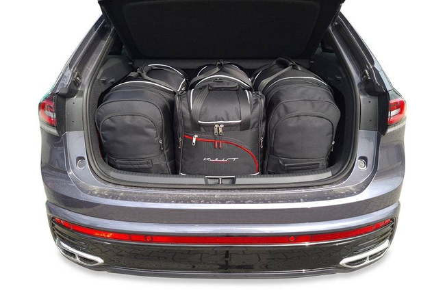 Le borse riempiono ogni centimetro quadrato del bagagliaio grazie ai lati inclinati che si allineano con l'angolazione dei sedili posteriori. Questa è una caratteristica unica delle borse KJUST.