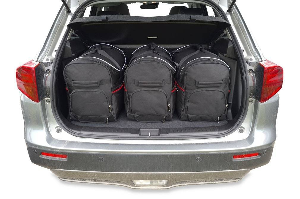 Le borse riempiono ogni centimetro quadrato del bagagliaio grazie ai lati inclinati che si allineano con l'angolazione dei sedili posteriori. Questa è una caratteristica unica delle borse KJUST.