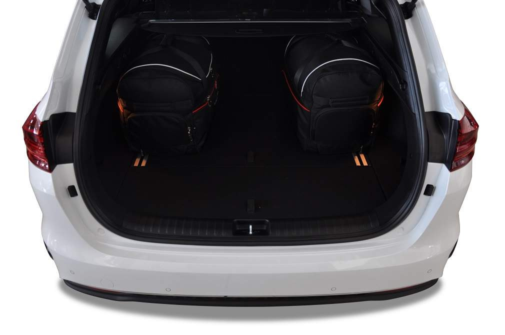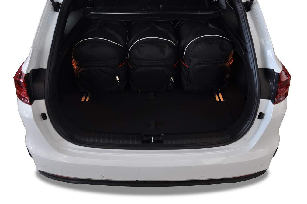 Le borse riempiono ogni centimetro quadrato del bagagliaio grazie ai lati inclinati che si allineano con l'angolazione dei sedili posteriori. Questa è una caratteristica unica delle borse KJUST.