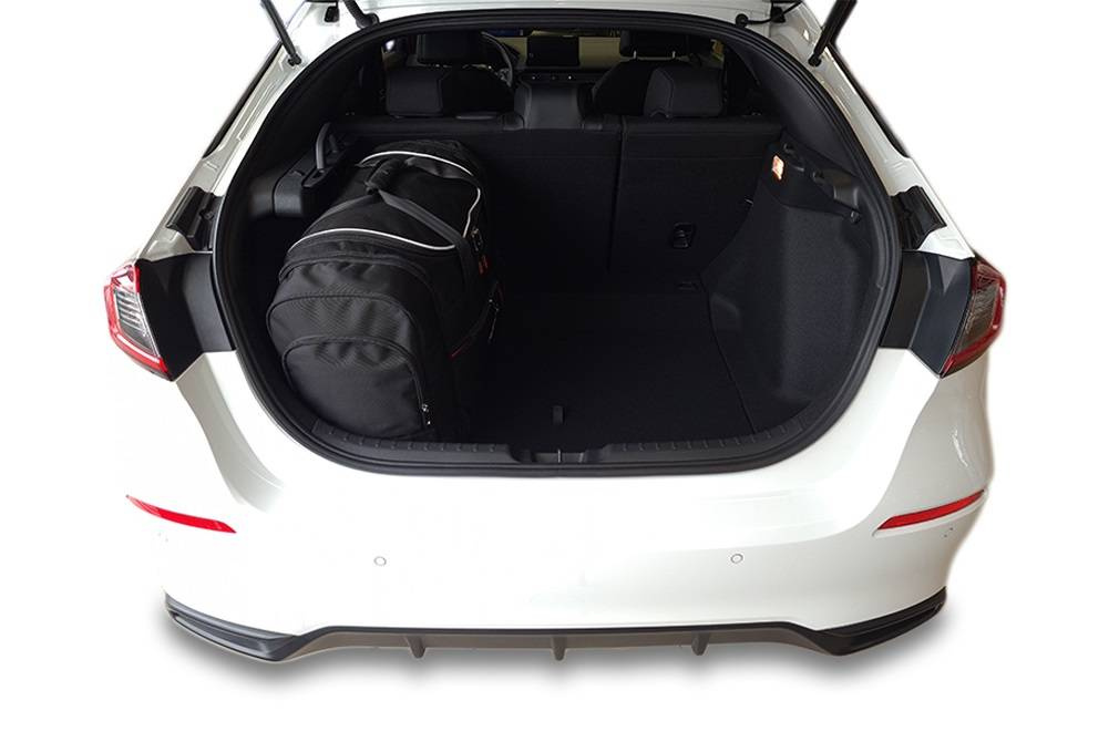 Le borse riempiono ogni centimetro quadrato del bagagliaio grazie ai lati inclinati che si allineano con l'angolazione dei sedili posteriori. Questa è una caratteristica unica delle borse KJUST.