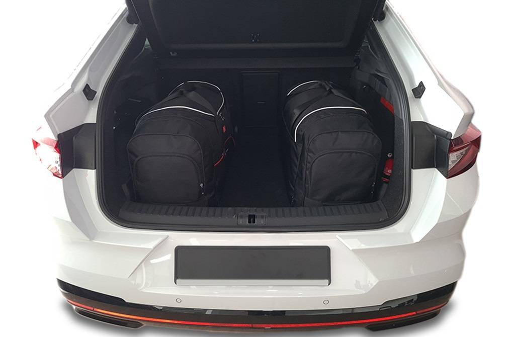 Le borse riempiono ogni centimetro quadrato del bagagliaio grazie ai lati inclinati che si allineano con l'angolazione dei sedili posteriori. Questa è una caratteristica unica delle borse KJUST.