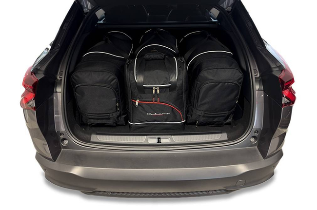 Le borse riempiono ogni centimetro quadrato del bagagliaio grazie ai lati inclinati che si allineano con l'angolazione dei sedili posteriori. Questa è una caratteristica unica delle borse KJUST.
