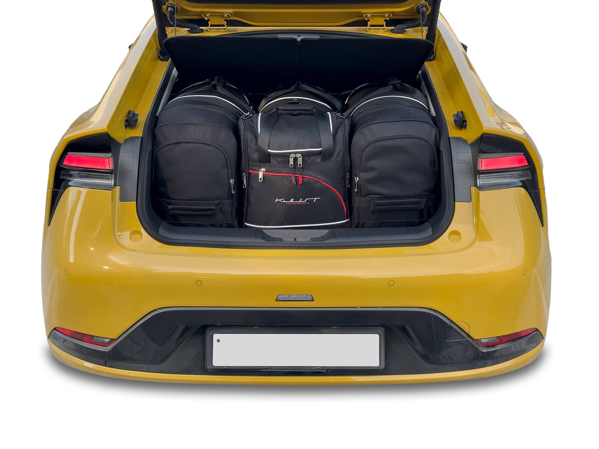 Le borse riempiono ogni centimetro quadrato del bagagliaio grazie ai lati inclinati che si allineano con l'angolazione dei sedili posteriori. Questa è una caratteristica unica delle borse KJUST.
