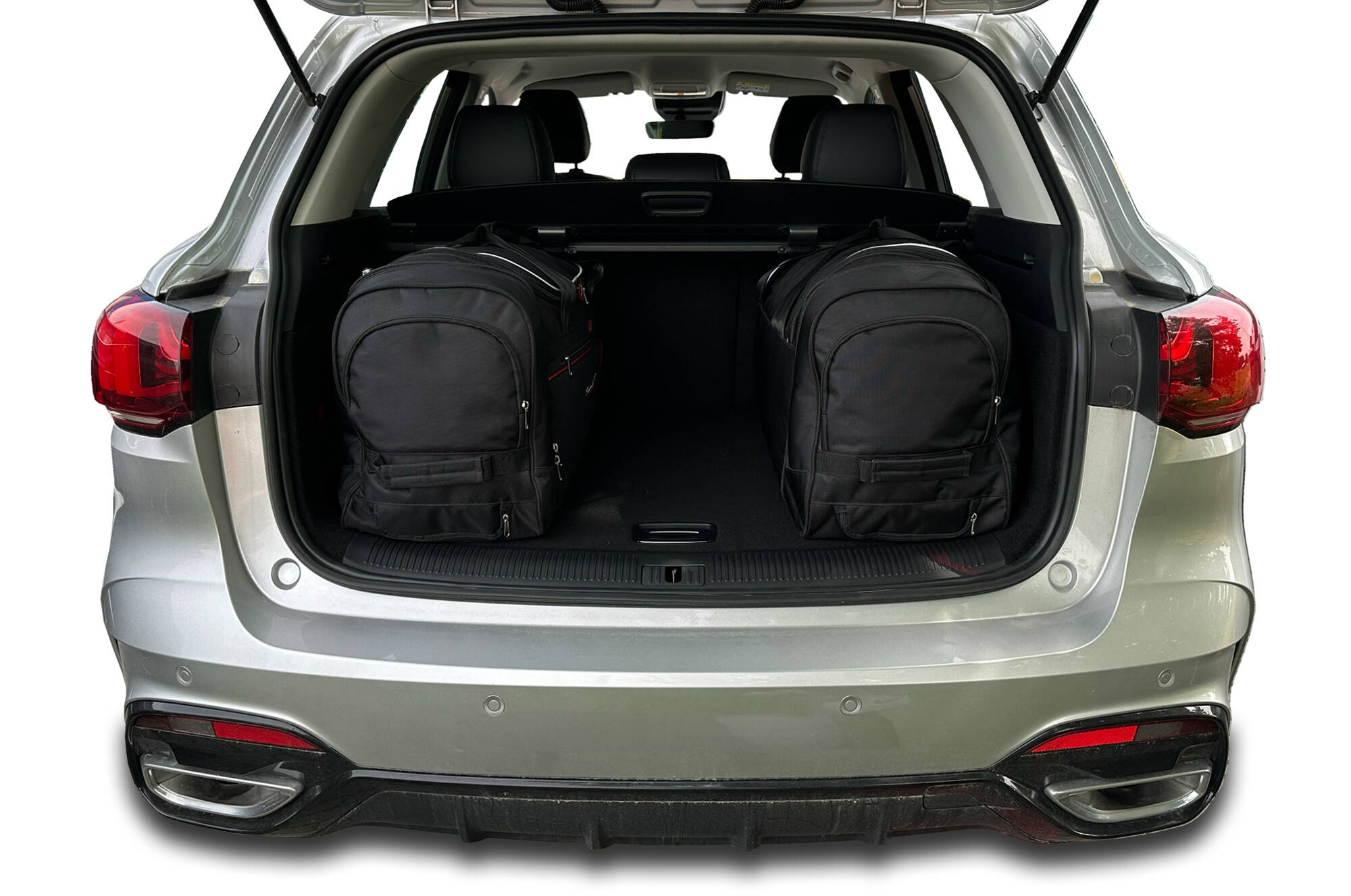 Le borse riempiono ogni centimetro quadrato del bagagliaio grazie ai lati inclinati che si allineano con l'angolazione dei sedili posteriori. Questa è una caratteristica unica delle borse KJUST.