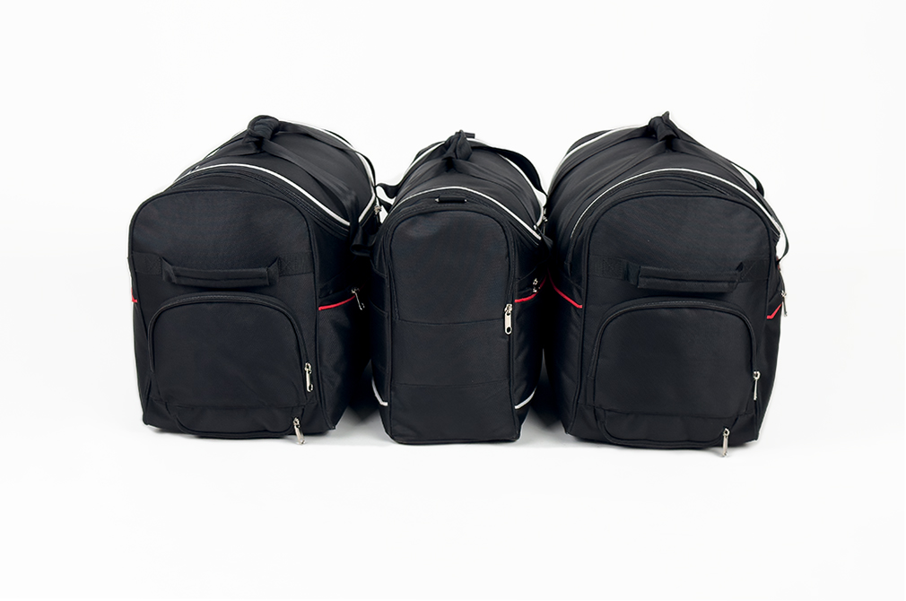 Le borse riempiono ogni centimetro quadrato del bagagliaio grazie ai lati inclinati che si allineano con l'angolazione dei sedili posteriori. Questa è una caratteristica unica delle borse KJUST.