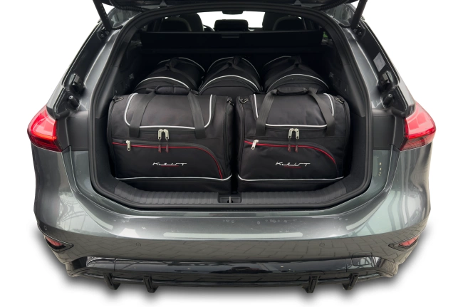 Le borse riempiono ogni centimetro quadrato del bagagliaio grazie ai lati inclinati che si allineano con l'angolazione dei sedili posteriori. Questa è una caratteristica unica delle borse KJUST.