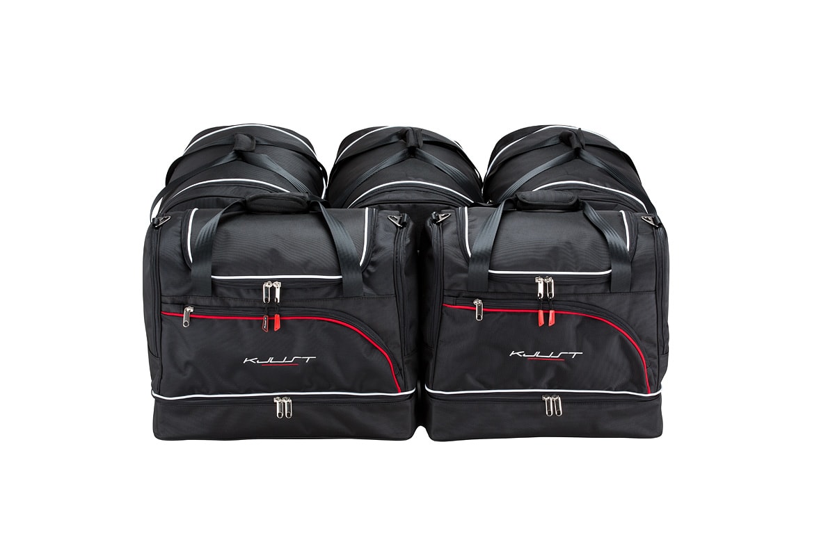 Le borse riempiono ogni centimetro quadrato del bagagliaio grazie ai lati inclinati che si allineano con l'angolazione dei sedili posteriori. Questa è una caratteristica unica delle borse KJUST.