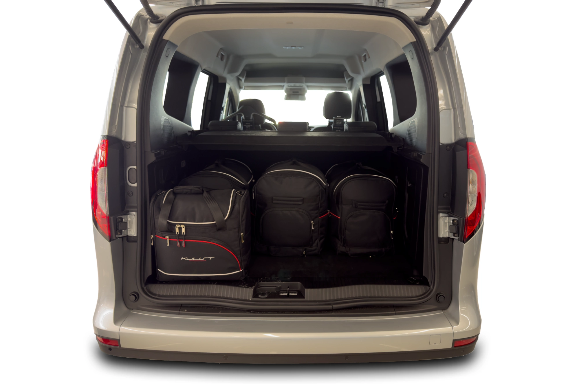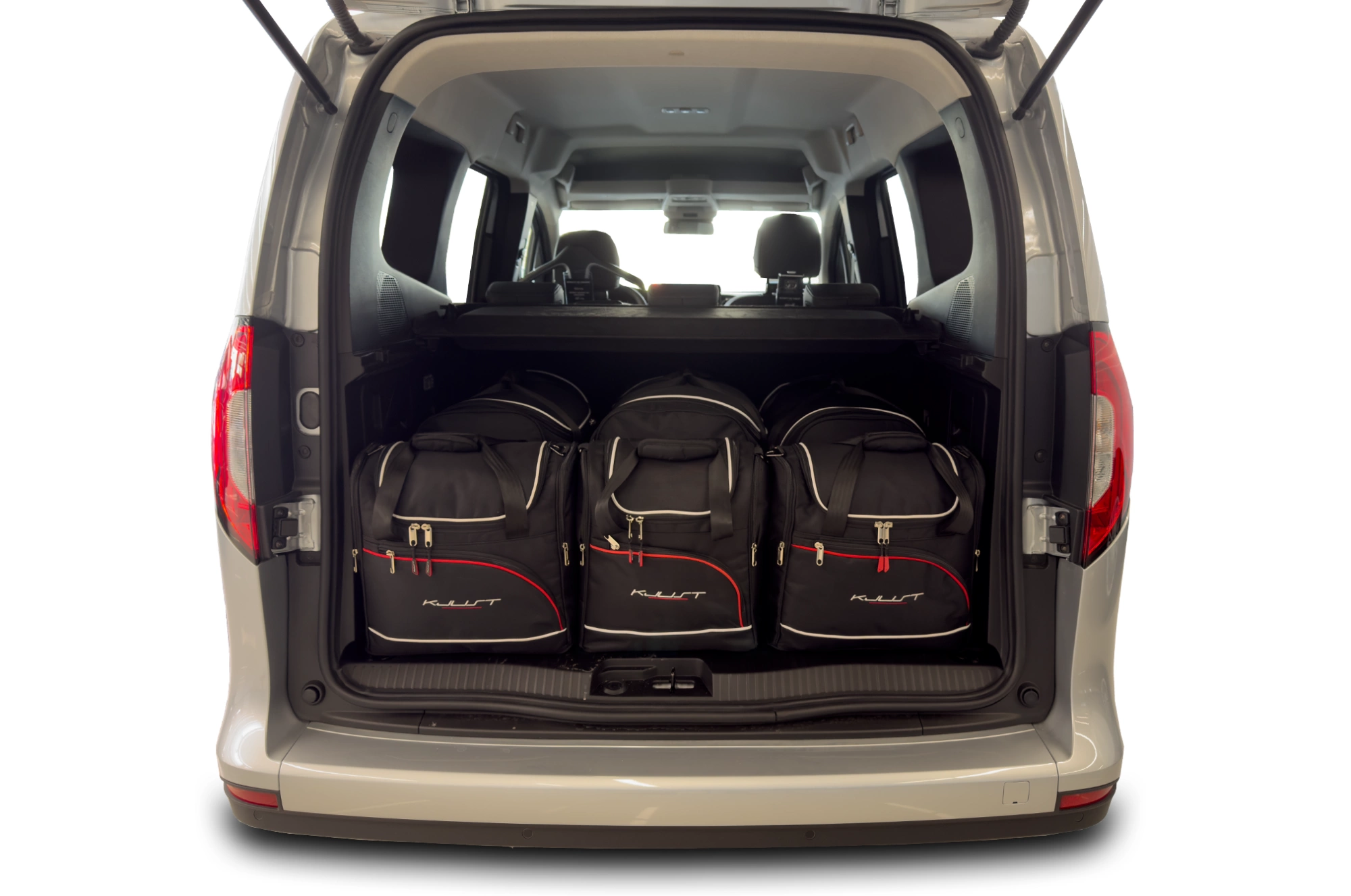 Le borse riempiono ogni centimetro quadrato del bagagliaio grazie ai lati inclinati che si allineano con l'angolazione dei sedili posteriori. Questa è una caratteristica unica delle borse KJUST.