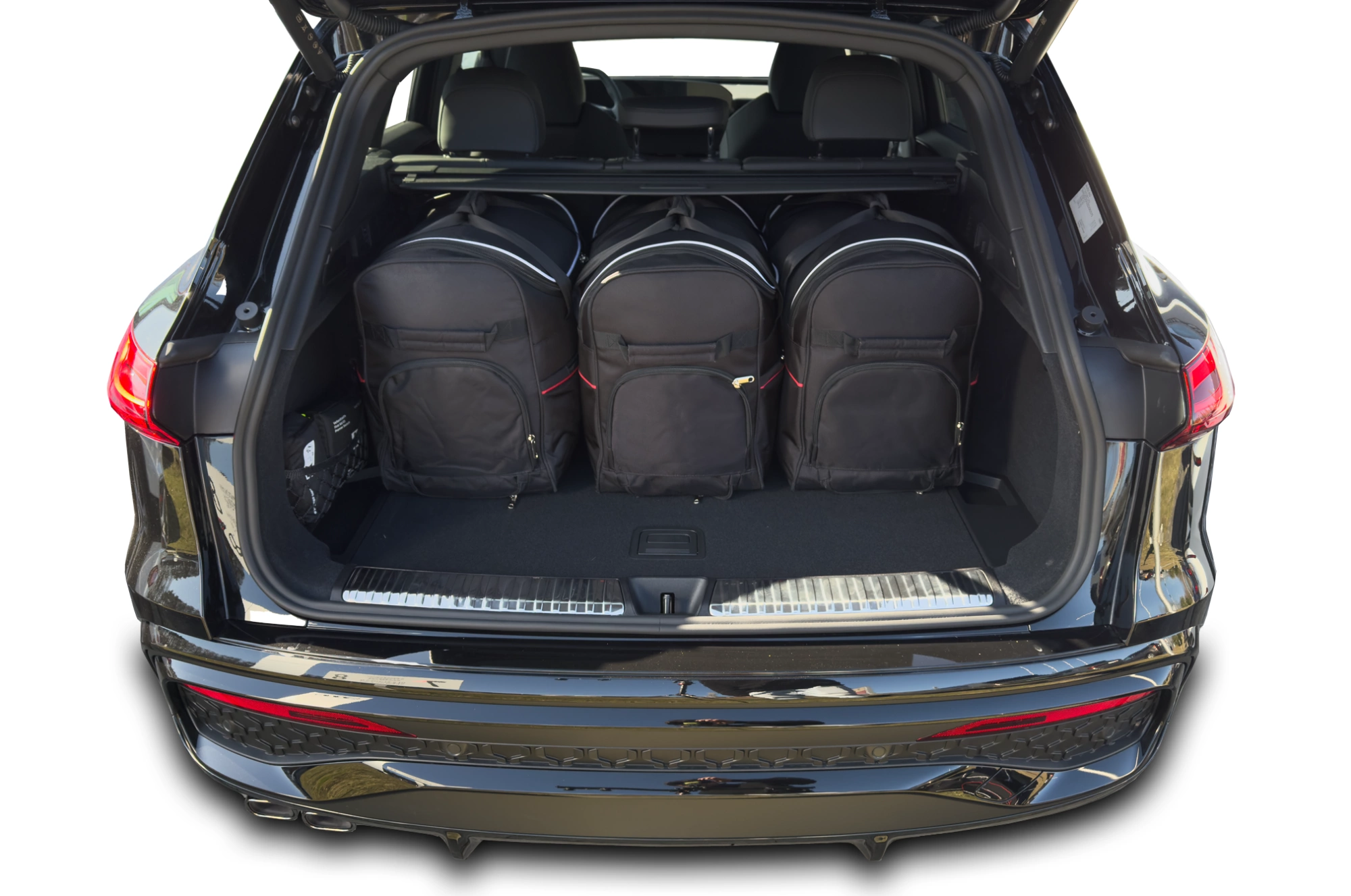 Le borse riempiono ogni centimetro quadrato del bagagliaio grazie ai lati inclinati che si allineano con l'angolazione dei sedili posteriori. Questa è una caratteristica unica delle borse KJUST.