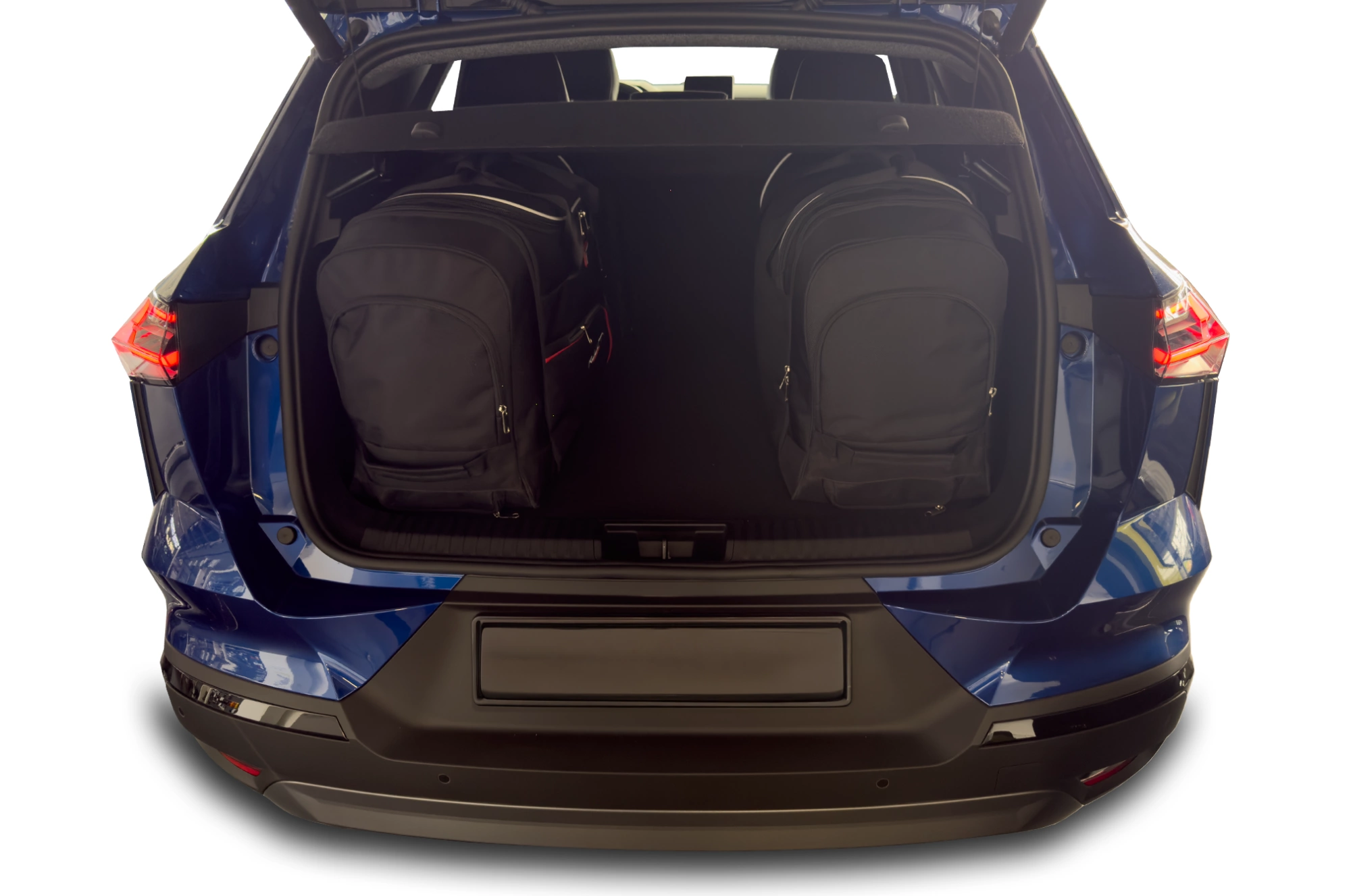 Le borse riempiono ogni centimetro quadrato del bagagliaio grazie ai lati inclinati che si allineano con l'angolazione dei sedili posteriori. Questa è una caratteristica unica delle borse KJUST.