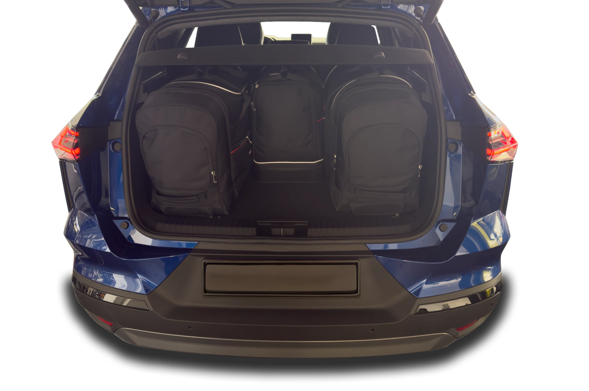 Le borse riempiono ogni centimetro quadrato del bagagliaio grazie ai lati inclinati che si allineano con l'angolazione dei sedili posteriori. Questa è una caratteristica unica delle borse KJUST.
