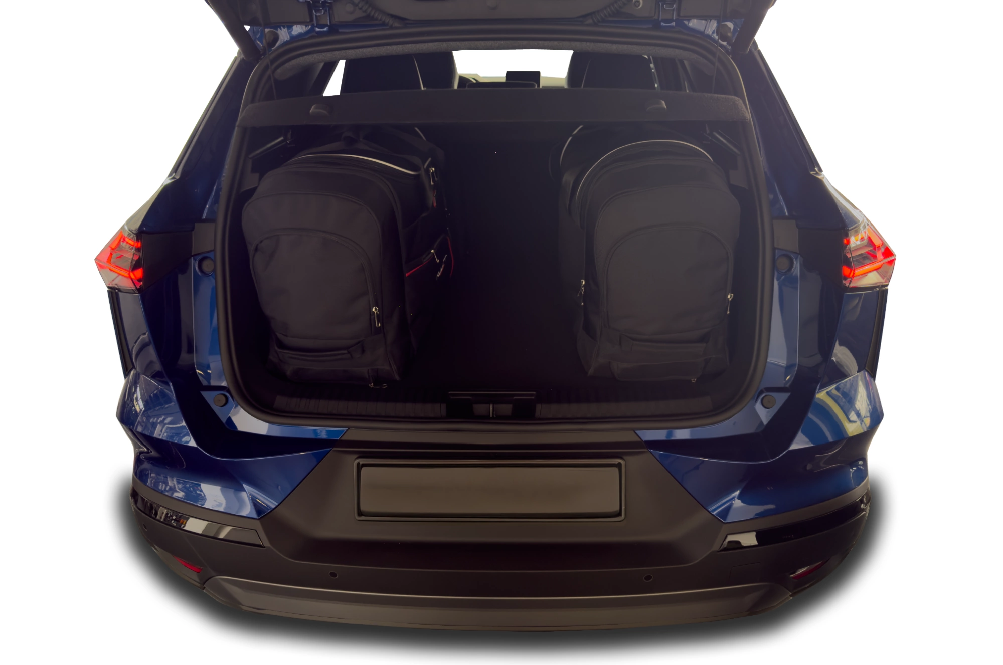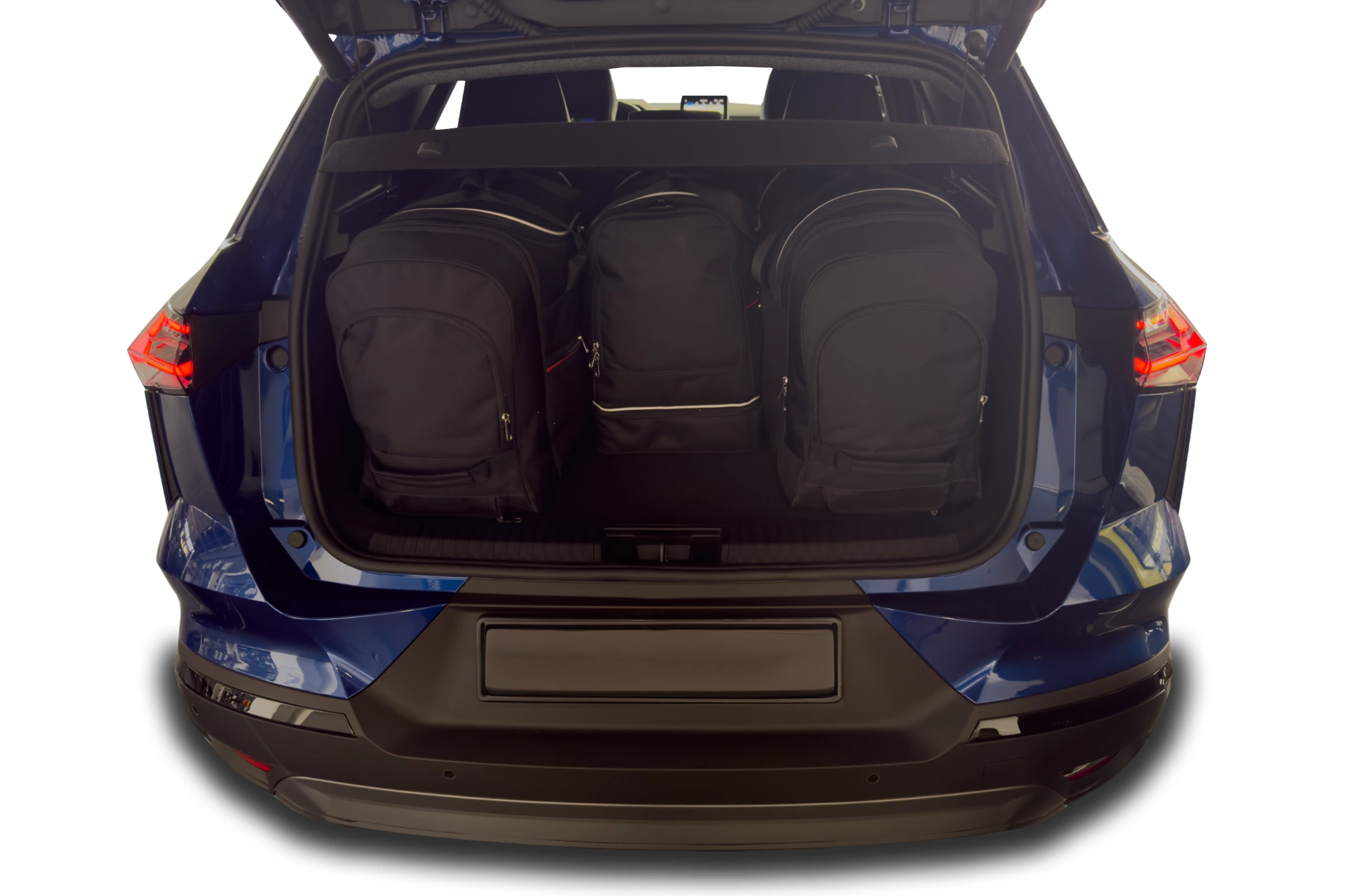 Le borse riempiono ogni centimetro quadrato del bagagliaio grazie ai lati inclinati che si allineano con l'angolazione dei sedili posteriori. Questa è una caratteristica unica delle borse KJUST.