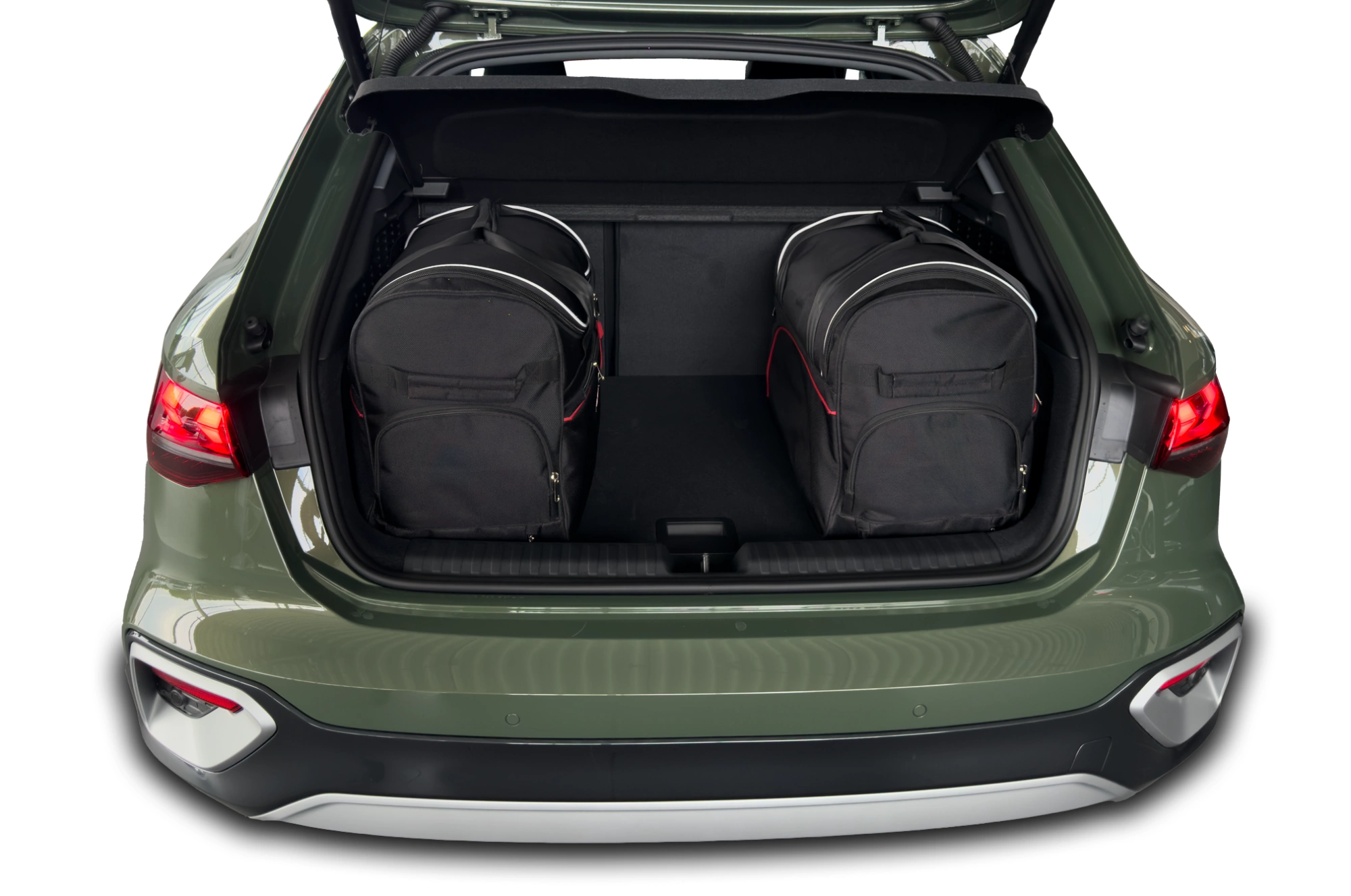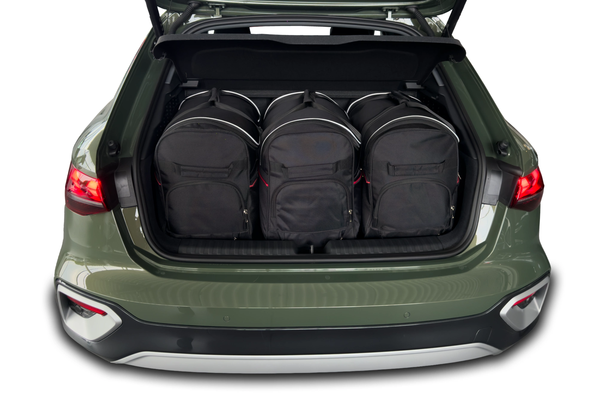 Le borse riempiono ogni centimetro quadrato del bagagliaio grazie ai lati inclinati che si allineano con l'angolazione dei sedili posteriori. Questa è una caratteristica unica delle borse KJUST.
