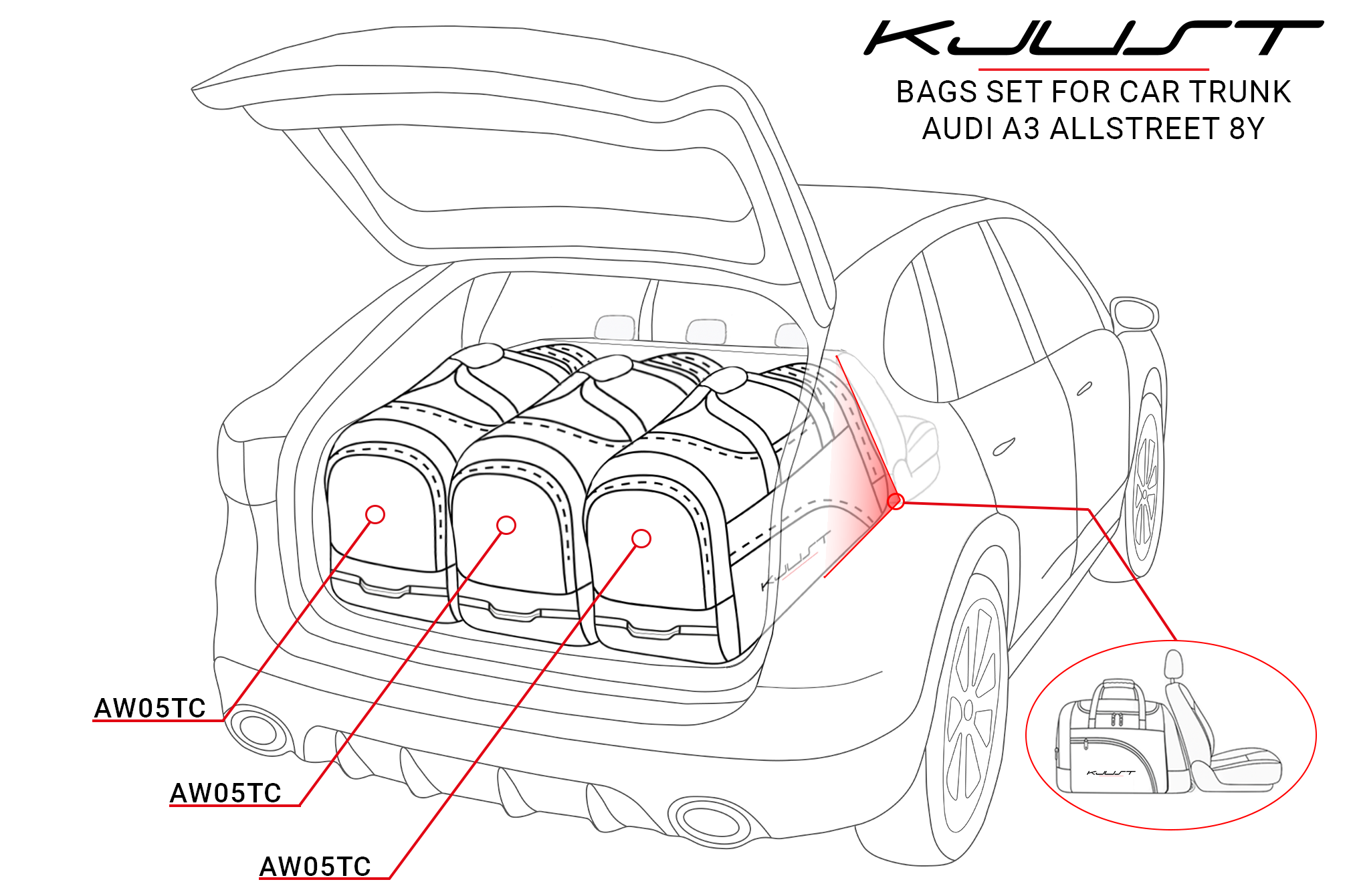 Borse per bagagliaio AUDI A3 ALLSTREET 2024+ 3 pezzi KJUST