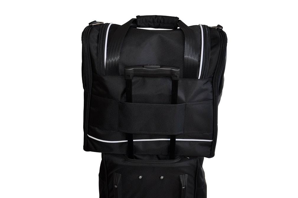 È possibile posizionare la borsa da viaggio sopra la borsa con ruote e trascinarla. È dotata di una maniglia speciale che la collega alla maniglia estensibile.