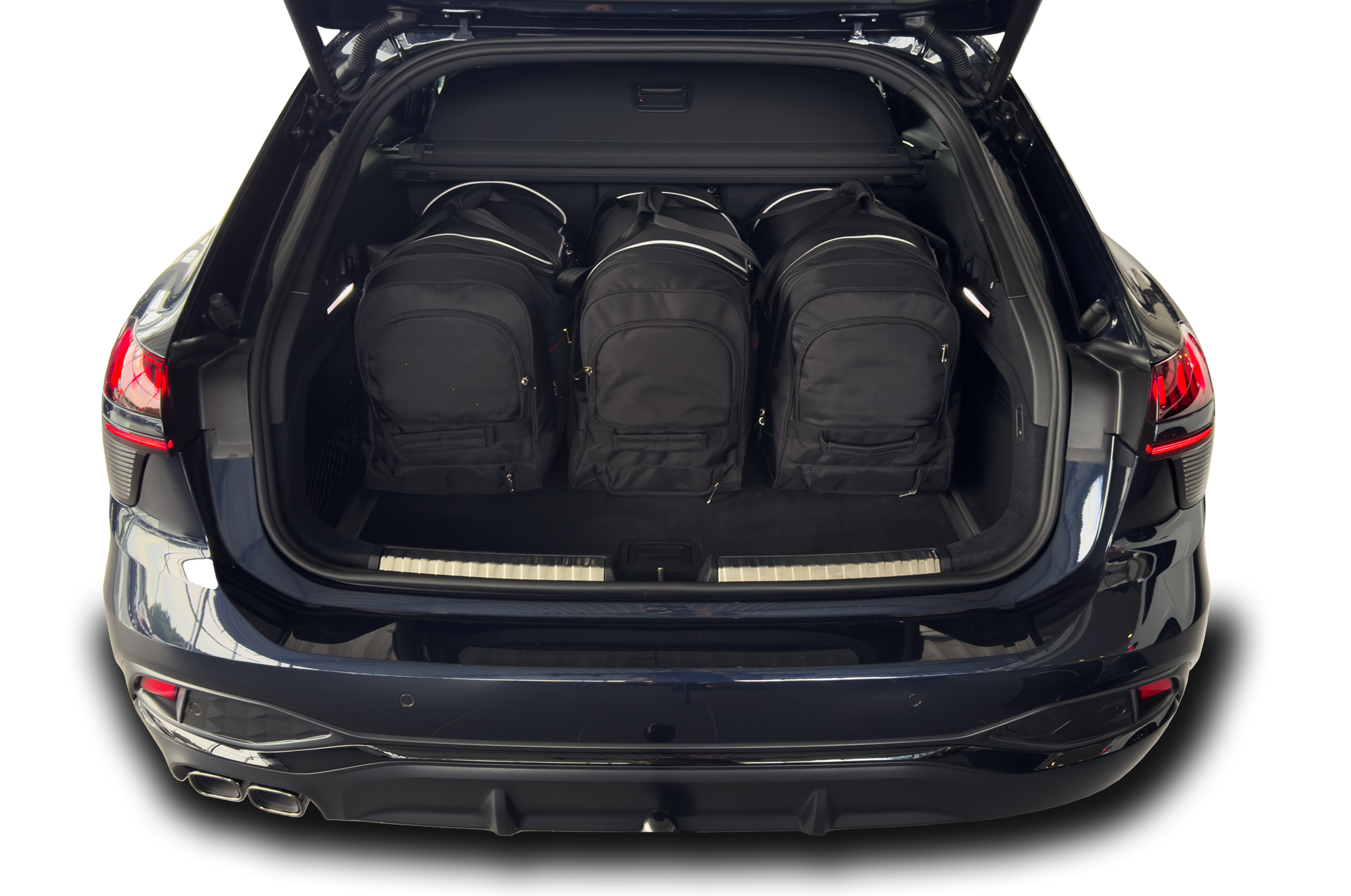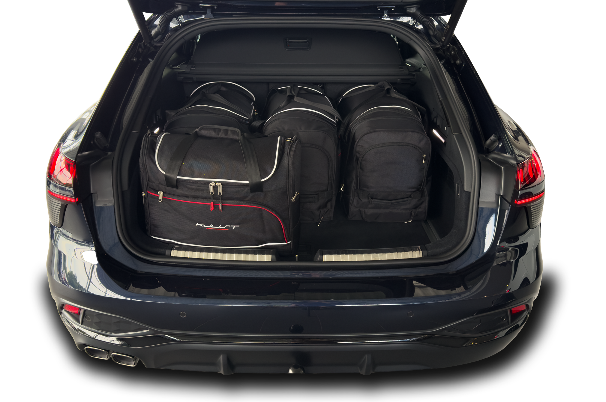 Le borse riempiono ogni centimetro quadrato del bagagliaio grazie ai lati inclinati che si allineano con l'angolazione dei sedili posteriori. Questa è una caratteristica unica delle borse KJUST.