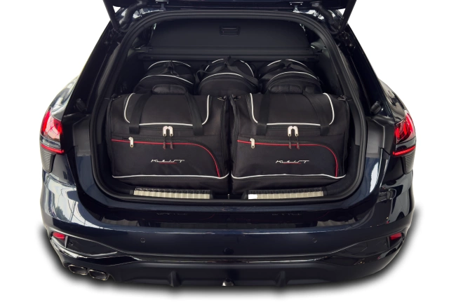 Le borse riempiono ogni centimetro quadrato del bagagliaio grazie ai lati inclinati che si allineano con l'angolazione dei sedili posteriori. Questa è una caratteristica unica delle borse KJUST.