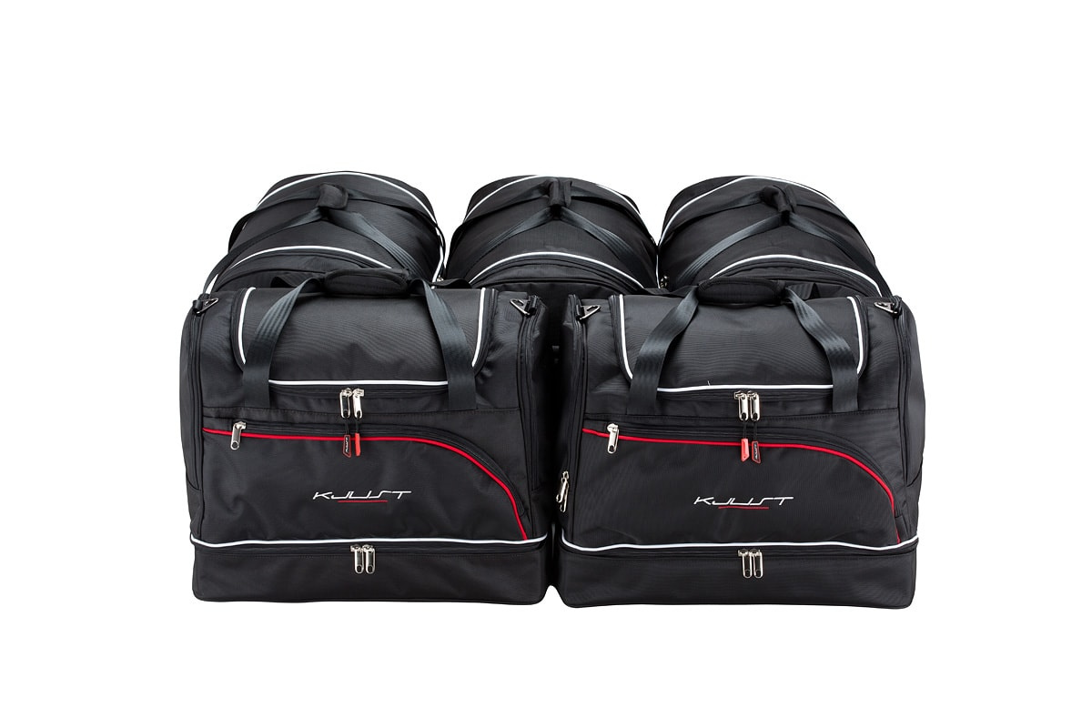 Le borse riempiono ogni centimetro quadrato del bagagliaio grazie ai lati inclinati che si allineano con l'angolazione dei sedili posteriori. Questa è una caratteristica unica delle borse KJUST.