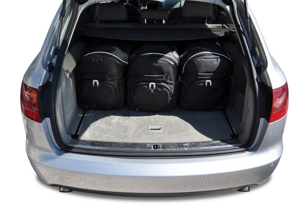 Las bolsas llenan cada centímetro cuadrado del maletero, gracias a sus laterales oblicuos adaptados a la inclinación de los asientos traseros. Es una característica única de las bolsas KJUST.