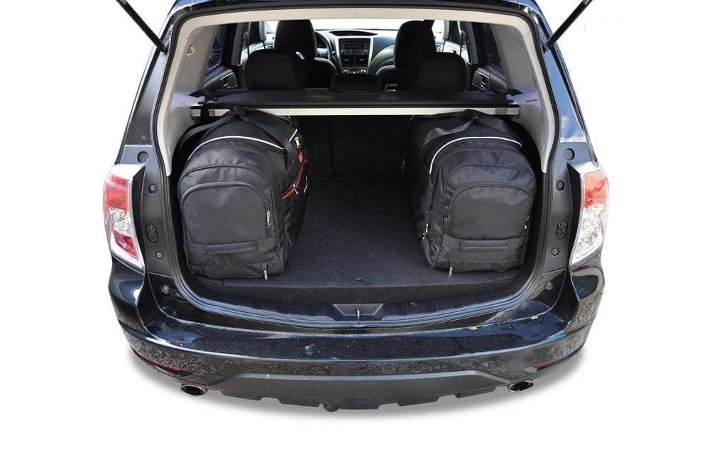 Las bolsas llenan cada centímetro cuadrado del maletero, gracias a sus laterales oblicuos adaptados a la inclinación de los asientos traseros. Es una característica única de las bolsas KJUST.