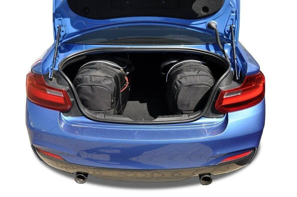 Las bolsas llenan cada centímetro cuadrado del maletero, gracias a sus laterales oblicuos adaptados a la inclinación de los asientos traseros. Es una característica única de las bolsas KJUST.