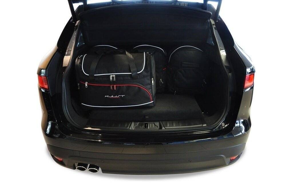 Las bolsas llenan cada centímetro cuadrado del maletero, gracias a sus laterales oblicuos adaptados a la inclinación de los asientos traseros. Es una característica única de las bolsas KJUST.