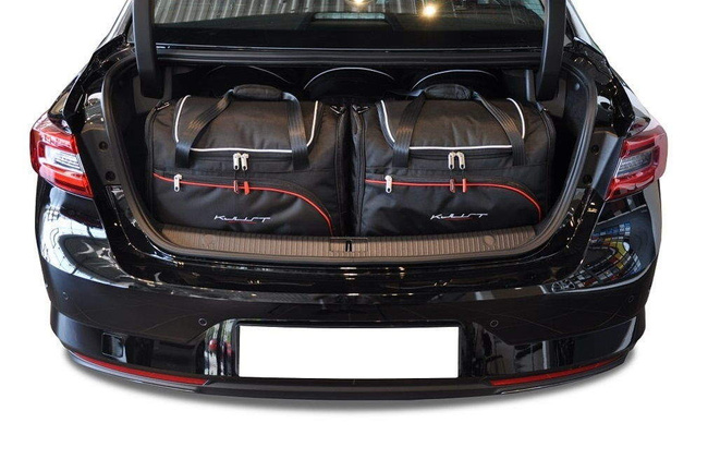 Las bolsas llenan cada centímetro cuadrado del maletero, gracias a sus laterales oblicuos adaptados a la inclinación de los asientos traseros. Es una característica única de las bolsas KJUST.