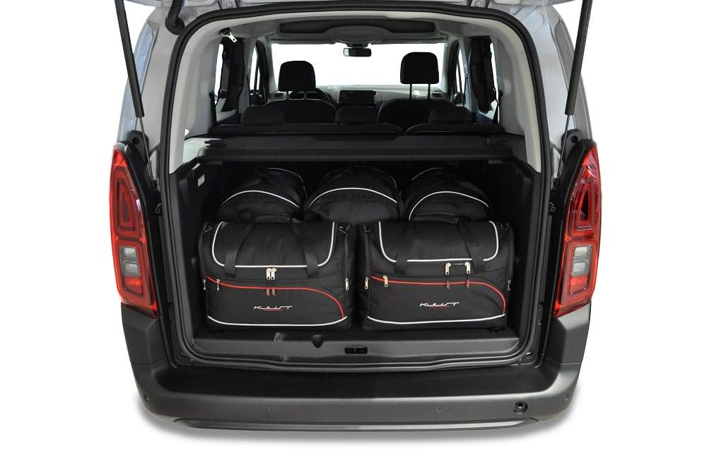 Las bolsas llenan cada centímetro cuadrado del maletero, gracias a sus laterales oblicuos adaptados a la inclinación de los asientos traseros. Es una característica única de las bolsas KJUST.