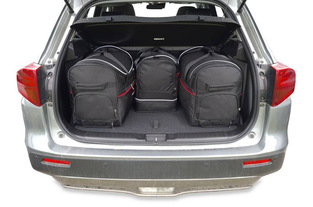 Las bolsas llenan cada centímetro cuadrado del maletero, gracias a sus laterales oblicuos adaptados a la inclinación de los asientos traseros. Es una característica única de las bolsas KJUST.