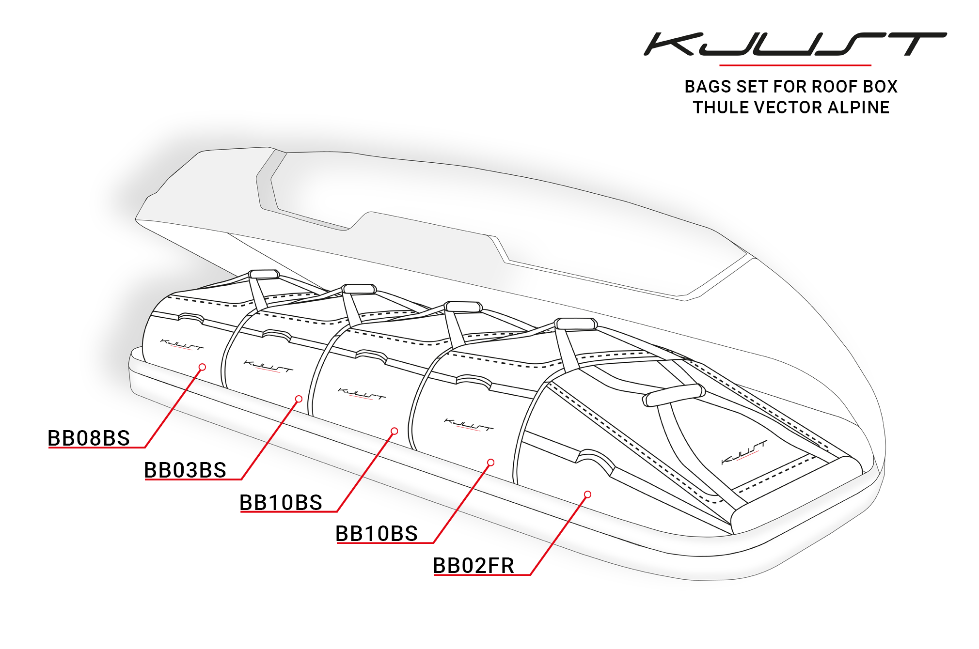 Si buscas una solución que aumente el espacio en tu cofre de techo, las bolsas KJUST son la elección ideal. Diseñadas para que sea más fácil viajar y hacer el equipaje. Las bolsas KJUST para el cofre de techo THULE VECTOR ALPINE garantizan que cada elemento de tu equipaje encuentre su lugar. Gracias a esto hacer el equipaje es algo rápido y libre de problemas.