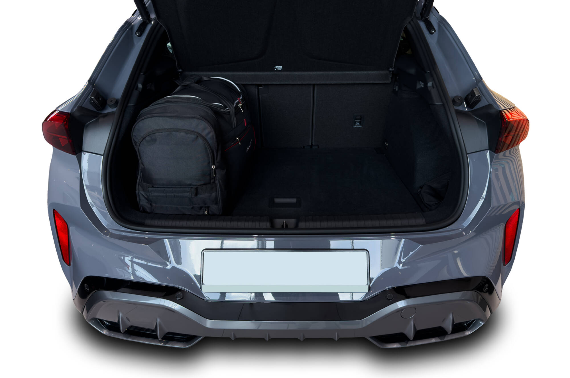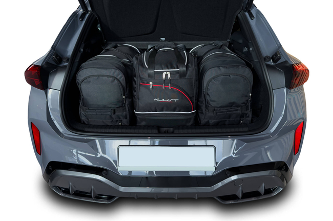 Las bolsas llenan cada centímetro cuadrado del maletero, gracias a sus laterales oblicuos adaptados a la inclinación de los asientos traseros. Es una característica única de las bolsas KJUST.