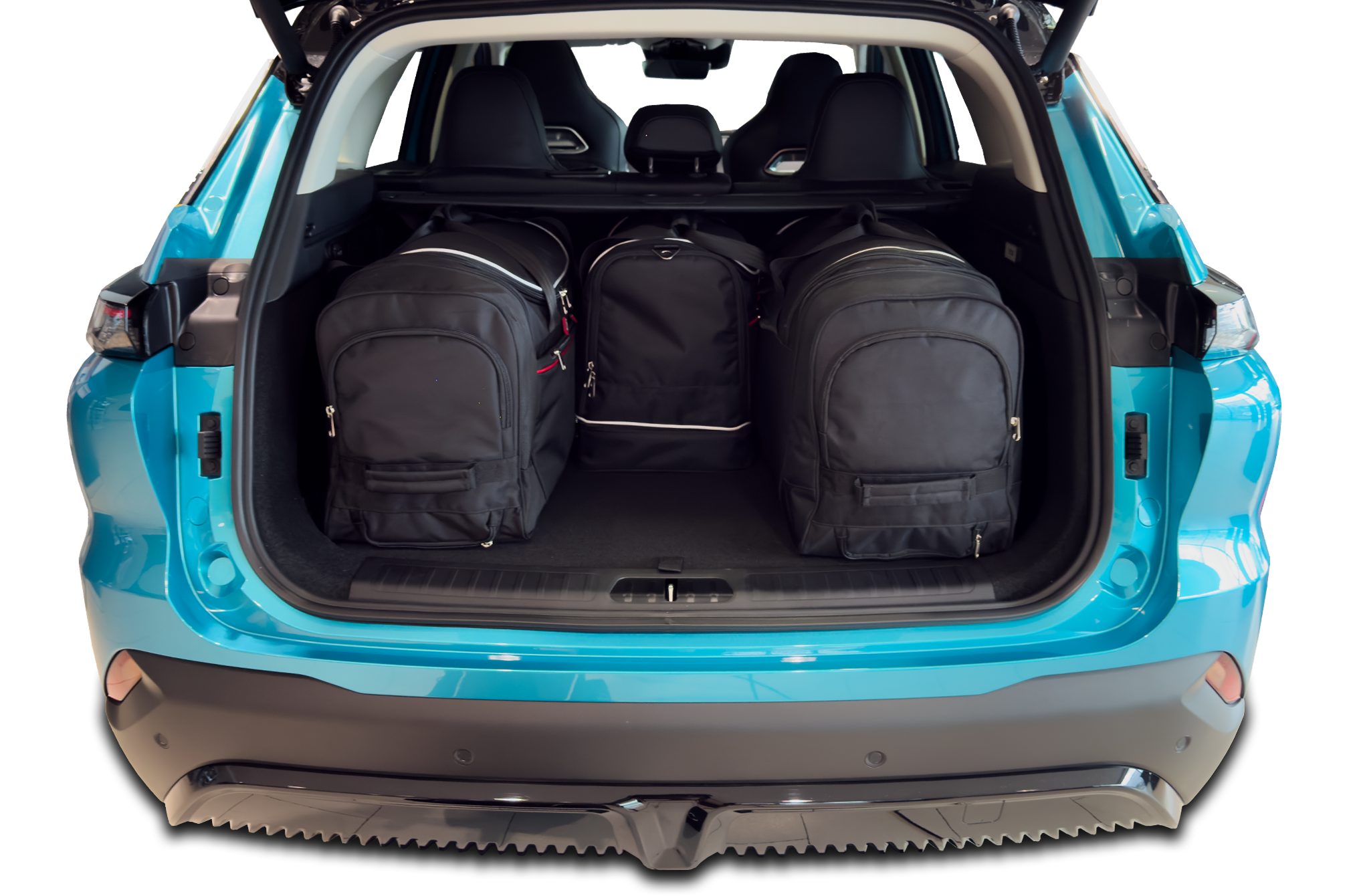 Las bolsas llenan cada centímetro cuadrado del maletero, gracias a sus laterales oblicuos adaptados a la inclinación de los asientos traseros. Es una característica única de las bolsas KJUST.