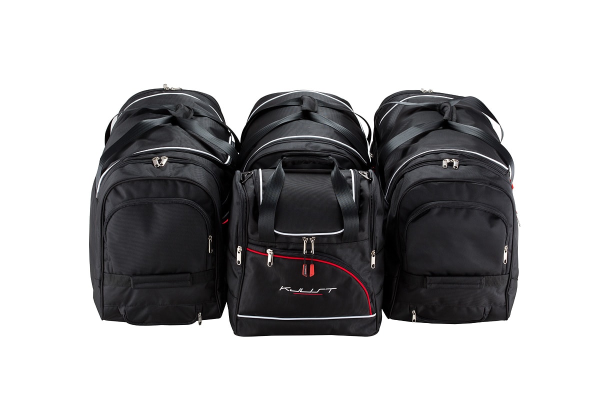 Las bolsas llenan cada centímetro cuadrado del maletero, gracias a sus laterales oblicuos adaptados a la inclinación de los asientos traseros. Es una característica única de las bolsas KJUST.